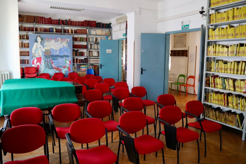 Al termine del corridoio, si apre la sala conferenze, uno spazio accogliente e funzionale, appositamente allestito per ospitare i partecipanti alle varie attività. La sala è dotata di strumenti all’avanguardia per la trasmissione in diretta streaming degli eventi, permettendo così di raggiungere un pubblico più vasto e di condividere le attività anche con chi non può essere presente fisicamente. Le pareti che delimitano la stanza sono ricoperte da scaffali colmi di migliaia di volumi monografici, offrendo un ambiente ricco di conoscenza e storia, ideale per l’approfondimento e la ricerca. Oltre a questa vasta collezione di libri, all’interno della sede è presente anche una sala protetta e non accessibile al pubblico, che custodisce un patrimonio archivistico di grande valore. Questo archivio, che raccoglie documenti e materiali storici di inestimabile importanza, è attualmente in attesa di un processo di salvaguardia e digitalizzazione. Una volta completato questo progetto, sarà possibile rendere accessibile a tutti un vero e proprio tesoro di informazioni, consentendo una più ampia fruizione del patrimonio documentale e garantendo la sua conservazione per le generazioni future.