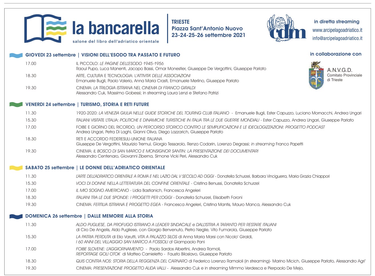 Condividiamo il programma de "La Bancarella. Salone del libro dell'Adriatico orientale". Partecipate numerosi!