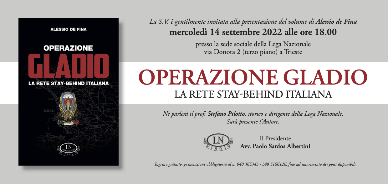 mercoledì 14 settembre 2022 alle ore 18.00 presso la sede sociale della Lega Nazionale via Donota 2 (terzo piano) a Trieste